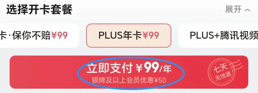 如果没出现红包,那就暂时别开,多刷刷Plus页面,也许就会出现。叠加红包优惠后,我们实际开Plus会员的成本就降到了99-50=49元。