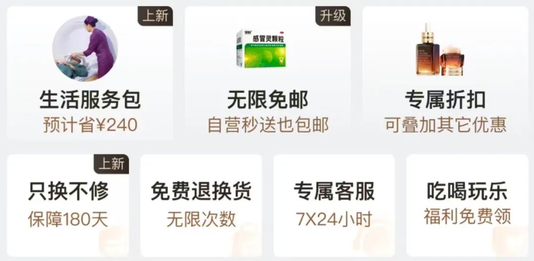 ● 新增了“生活权益包”,自用总价值百元以上;