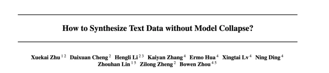 论文标题:HOW TO SYNTHESIZE TEXT DATA WITHOUT MODEL COLLAPSE?