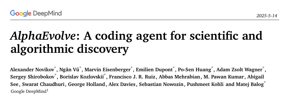 技术报告:https://storage.googleapis.com/deepmind-media/DeepMind.com/Blog/alphaevolve-a-gemini-powered-coding-agent-for-designing-advanced-algorithms/AlphaEvolve.pdf