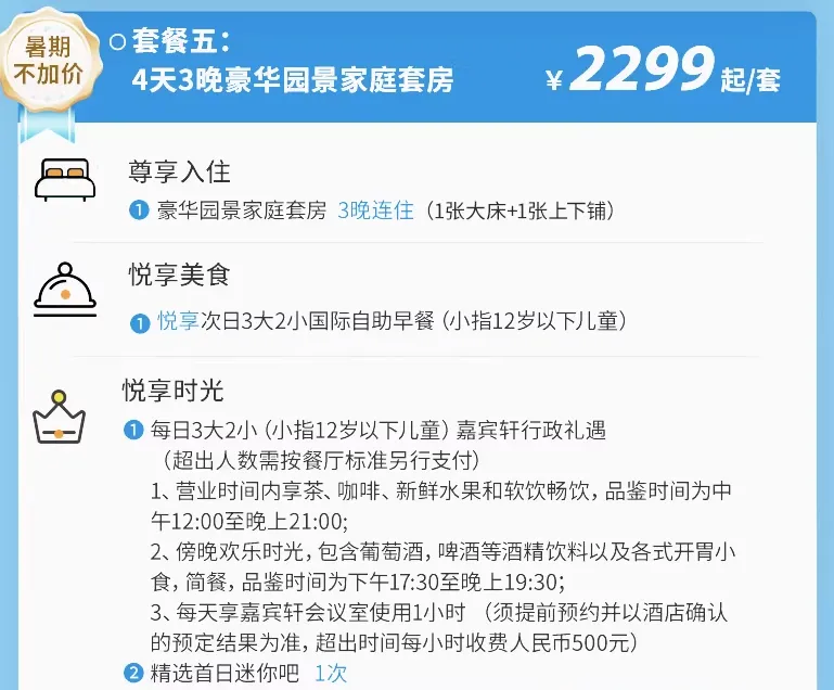 同款房型在暑假的周末每晚要1400+,现在套餐均价才766元/晚,差不多是日历房价5折!