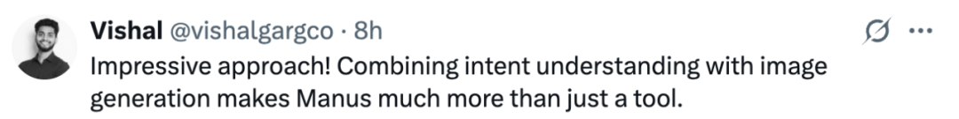 这里要强调一下,Manus 不只是生成图像,它能理解用户意图,规划解决方案,并知道如何有效地调用图像生成工具以及其他工具来完成你的任务。