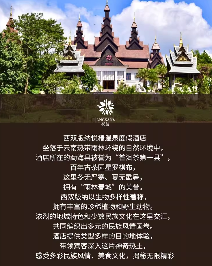 * **西双版纳悦椿温泉度假酒店:** 999元,恒春雨林房2晚+双早等,全程不加价。
