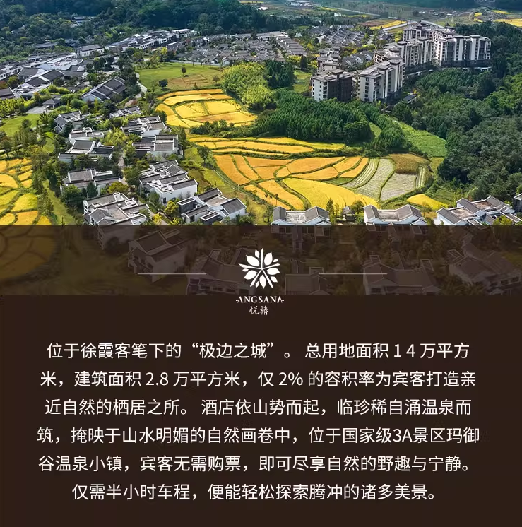 * **腾冲玛御谷悦椿酒店:** 2299元,温泉云栖山景房2晚+双早+悦椿温泉体验,全程不加价。