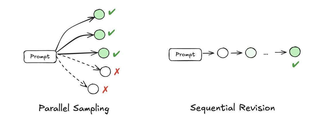 目前主要有两类提升生成质量的策略:并行采样(parallel sampling)与序列修订(sequential revision)。