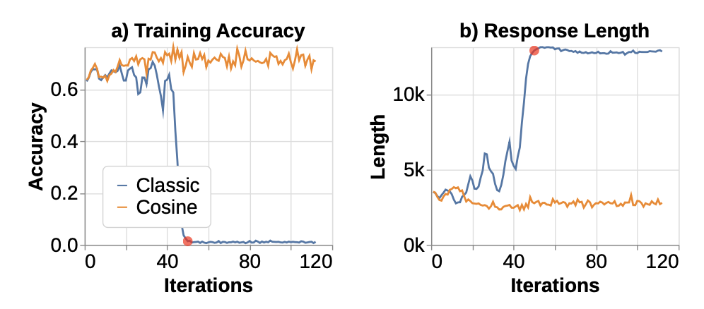 要稳定使用 CoT 长度奖励进行的训练,就必须进行精心的奖励塑造。图源:Yeo et al. 2025