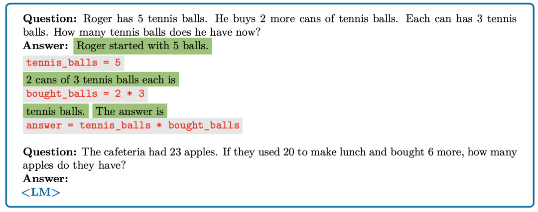 程序辅助语言模型(Program-Aided Language Model)提示示例如下所示。