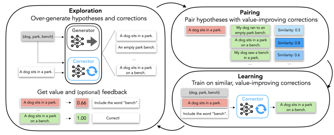 4. 为鼓励探索,修正器生成的新输出也会加入数据池。推理时,可以反复调用修正器,从而形成一个连续改进的修订轨迹。