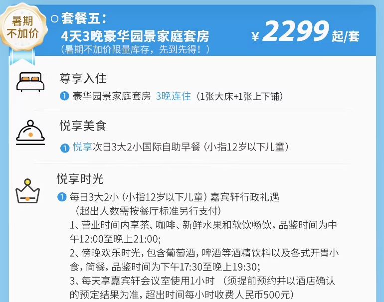 套房1晚+双早+延迟退房,499元起。11家酒店暑假全程不加价,999元档及以上享一住升金!