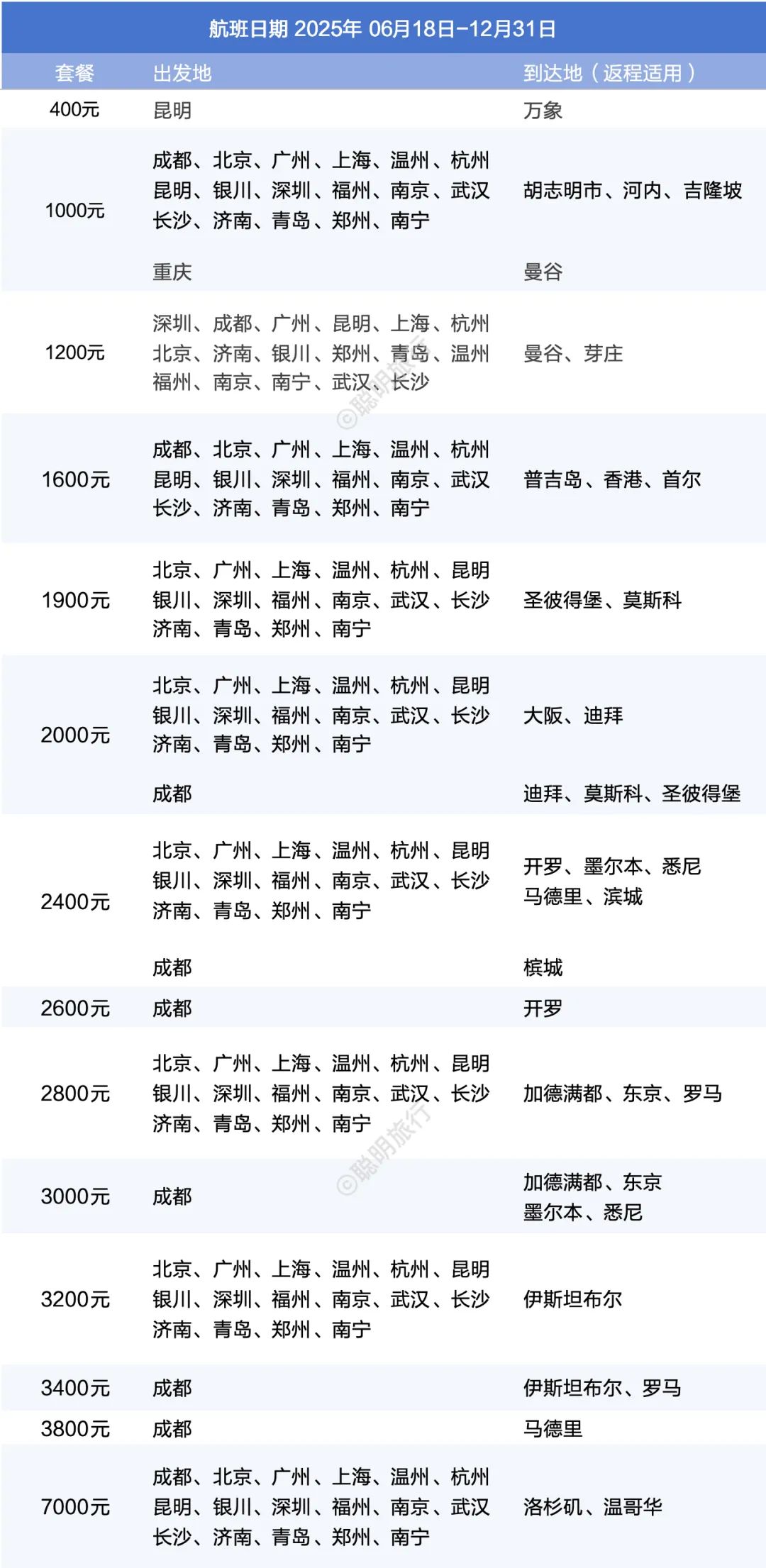 航班日期:6月18日-12月31日