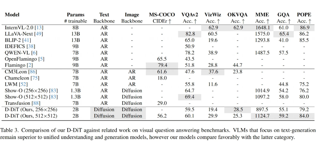 性能优于现有混合模型(如结合扩散 + 自回归的 Unidiffuser 等)。