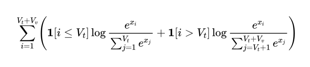 这里 是文本词汇量, 是视觉词汇量, 是第 个 token 的 logit 输出。