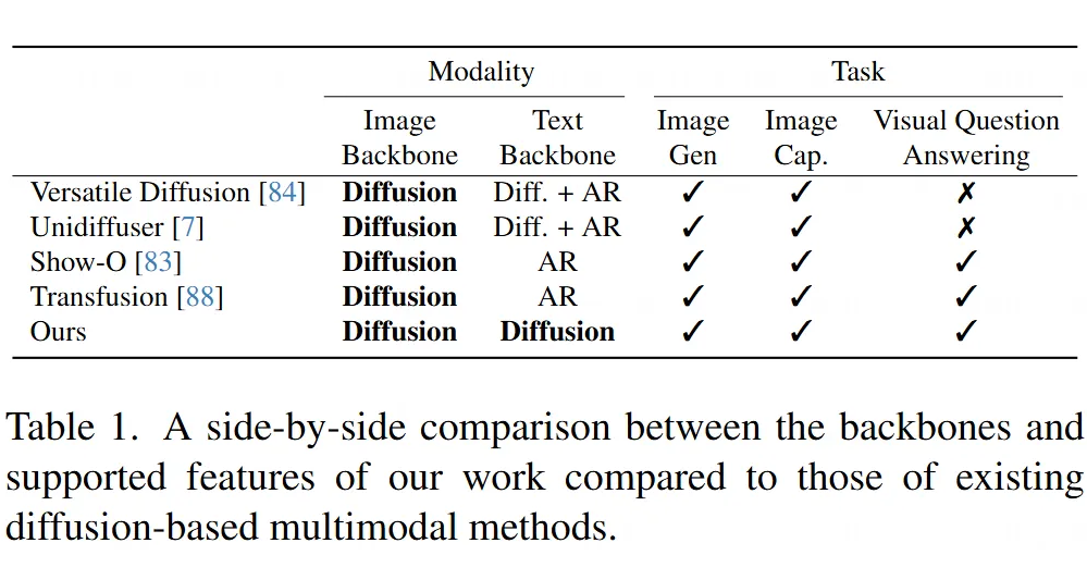 在扩散模型中首次实现了完全双向的模态交互(图像 ⇄ 文本),无需依赖自回归模型。