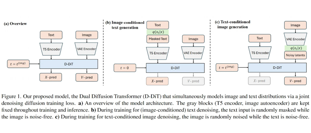 D-DiT 的核心是一个基于 Transformer 的架构,分成两个分支,就像两条腿一样分工合作:
