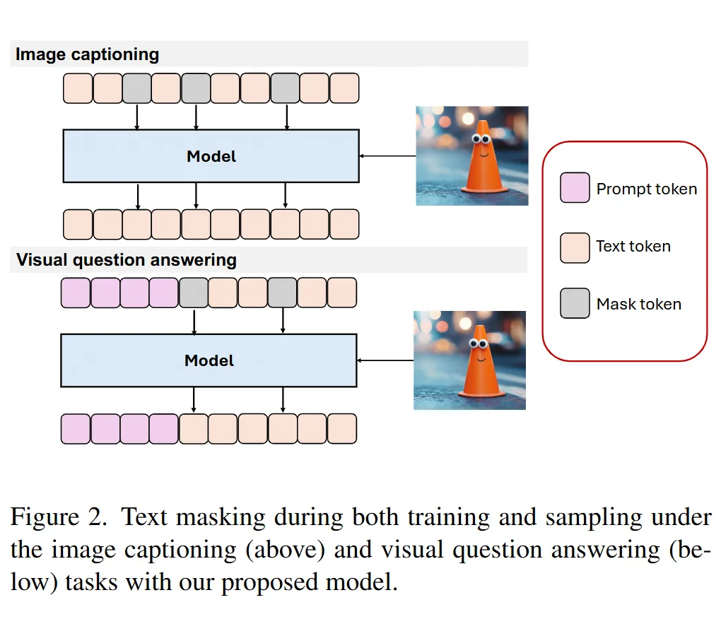 文本分支:负责处理文本的“词汇”,输出的是原始文本的预测,也就是从被打乱(比如部分被遮盖)的文本中猜出原本的内容。这个预测是基于图像条件的,记作: