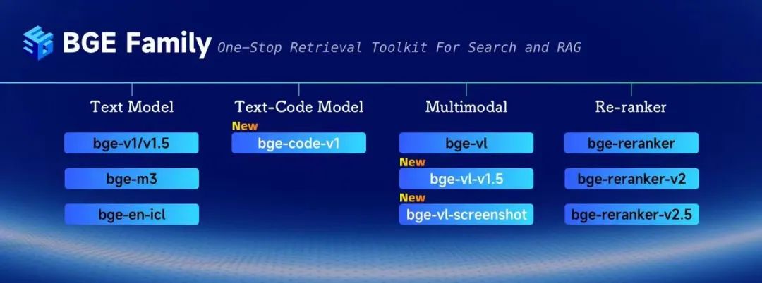 目前,BGE-Code-v1、BGE-VL-v1.5、BGE-VL-Screenshot 三款模型已向社区全面开放,为相关技术研究与产业应用提供助力。