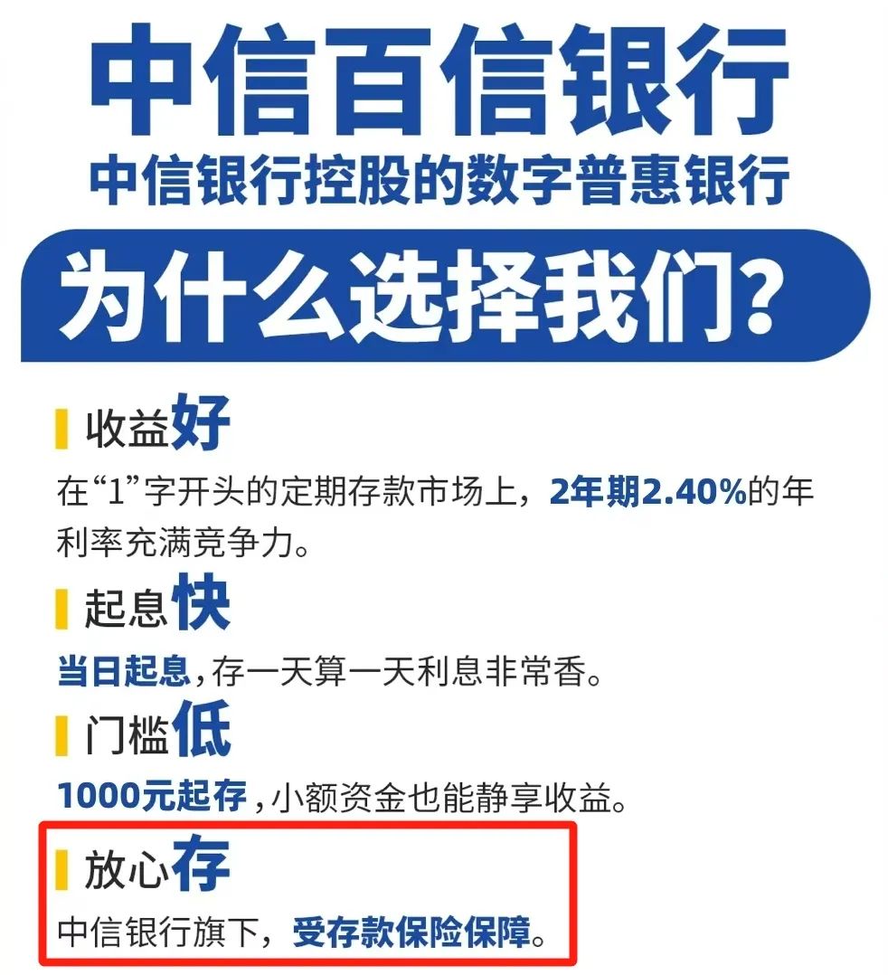 利率下行不用慌,百信银行2.4%高息定存了解一下!新用户专属,资金安全,还有羊毛可薅!