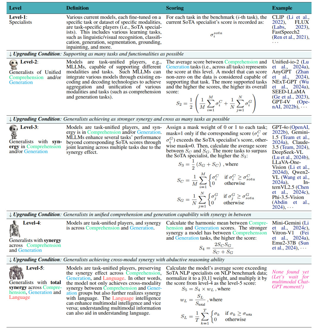 具体来说,General-Level 将 MLLM 划分为如下五个等级,: