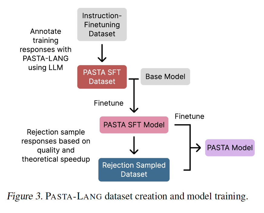 第一阶段:监督微调。研究团队首先选取 SlimOrca 指令跟随数据集,用 Gemini 1.5 Flash 为 100K 条样本添加 PASTA-LANG 标记,在样本回答中插入 <promise/>、<async> 和 <sync/> 标记, 创建 PASTA 微调数据集。团队随后对 Gemma 7B 进行监督微调,得到能插入 PASTA-LANG 标记的 PASTA-SFT 模型。