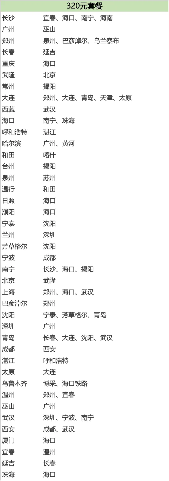 299元套餐扩展至东北、西北多省,如哈尔滨、佳木斯、兰州等地,实现跨区域经济飞行。