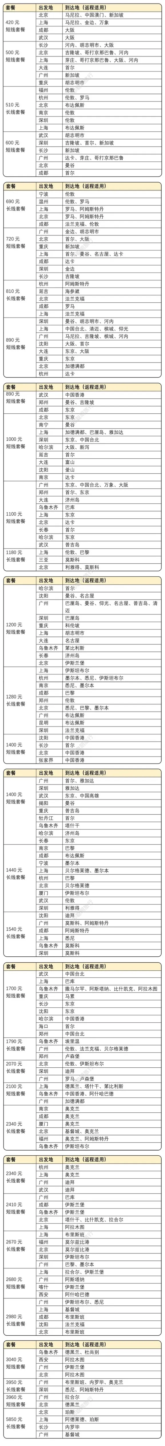 各价格档位限量1000套,人均往返含税3990元起