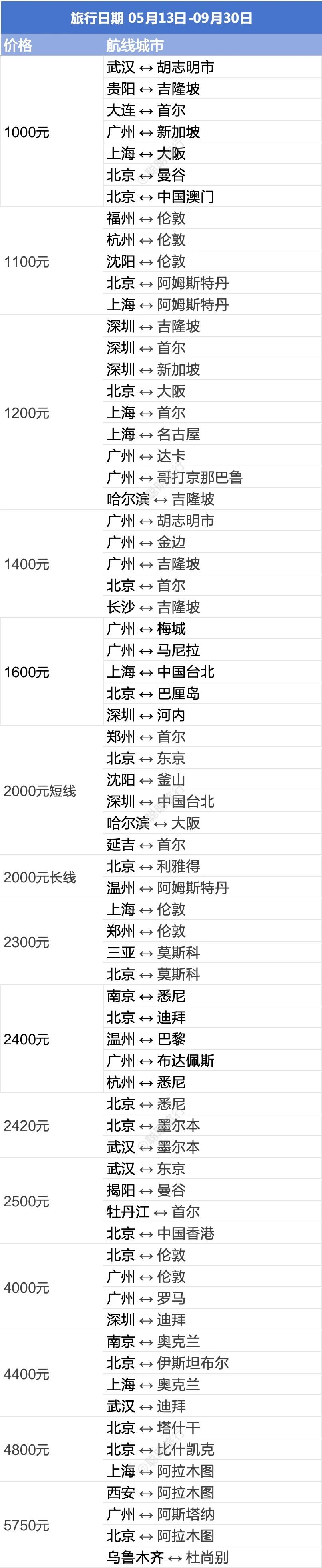 航班日期为5月25日至6月20日,适合错峰出行。
