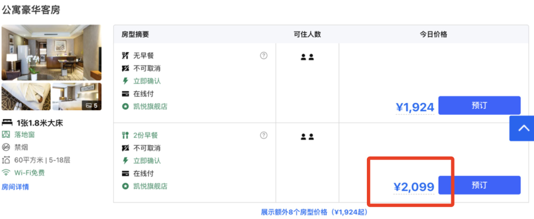 套餐拍2份,可以用满2998-400的券,券后499元/晚。日历房价格880+/晚,套餐仅55折。