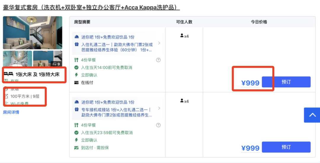 豪华复式套房2晚+4份早餐等,1308元。有效期到9月底,全程不加价!