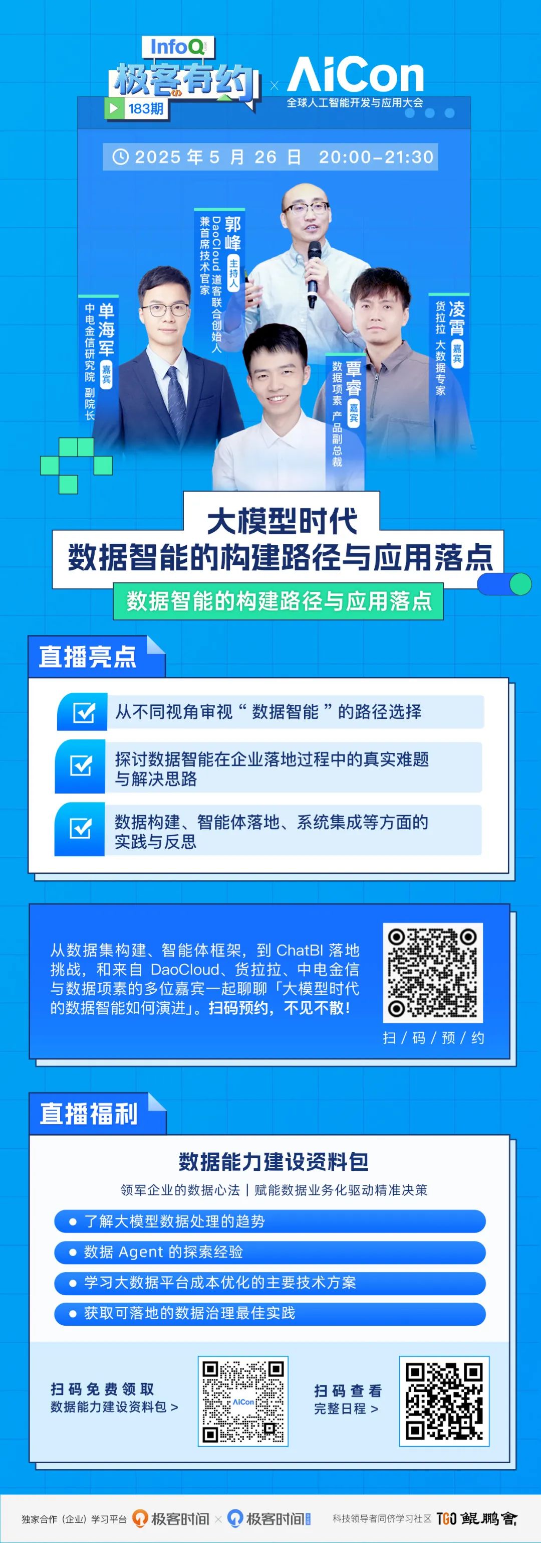 AI前线5月26日直播:探讨大模型时代数据智能的构建路径与应用落点,聚焦企业落地难题与实践反思。