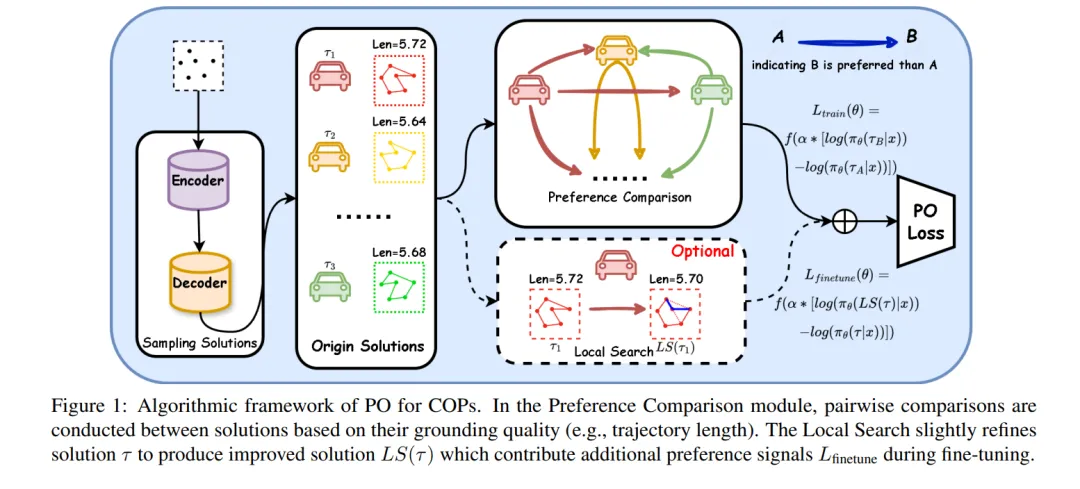此外,我们将局部搜索技术集成到策略微调过程中,而非作为后处理步骤,用于生成高质量的偏好对,从而帮助策略跳出局部最优解。
