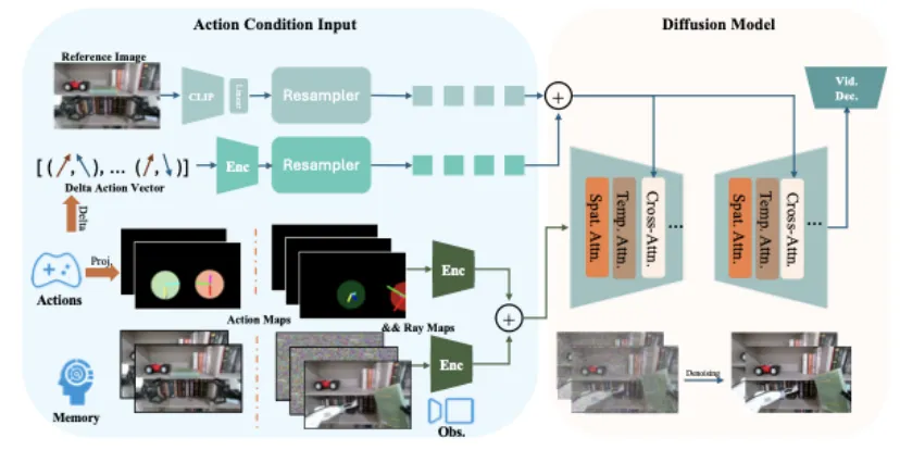 EVAC 基于前序工作 EnerVerse 架构持续演进,创新型引入多级动作条件注入机制,实现 “物理动作 - 视觉动态” 的端到端生成,其核心能力体现在以下几个方面: