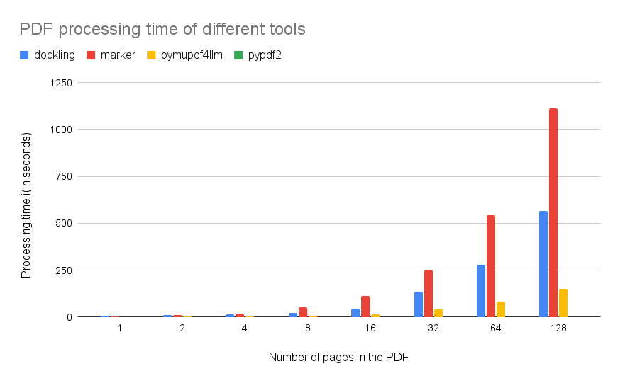 Docling处理单个PDF页大约需要4秒钟,而Marker需要双倍的时间。