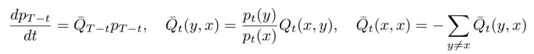 其中,表示扩散过程中的瞬时转移率矩阵,不妨首先考虑单个 token 的简单情形。为了生成样本,这一扩散过程存在一个对应的反向过程,其中包括一个反向转移率矩阵。