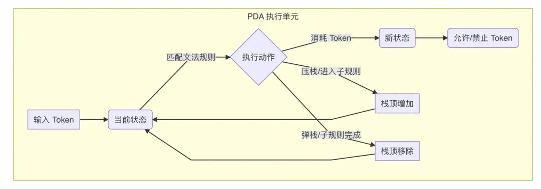 图 4: 简化的下推自动机 (PDA) 工作原理示意