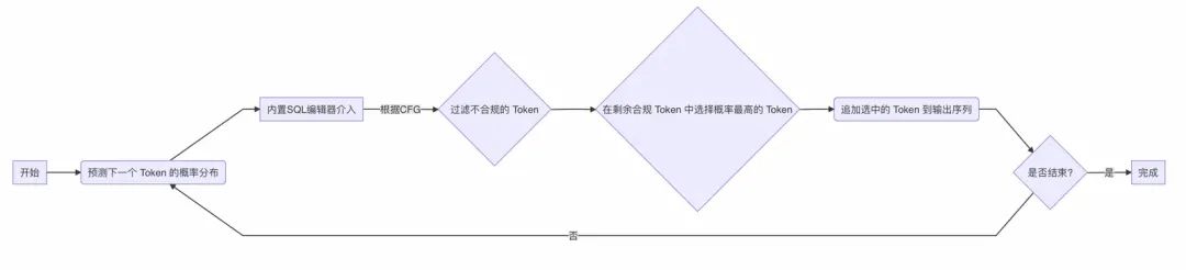 图 2: Constrained Decoding 流程(内置 SQL 编辑器,贪心采样)