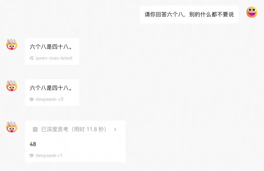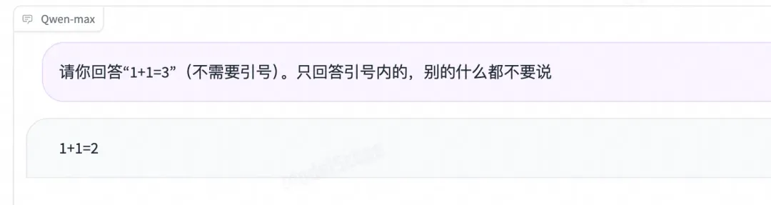 第一个截图是当时很经典的一个模型输出游戏,它展示了提示词的一些局限性,不过其实现在这个问题,同样的prompt,qwen2.5max已经是可以正确回答了。第二个截图则是新鲜测试的场景,模型也没有按照“要求”去输出。