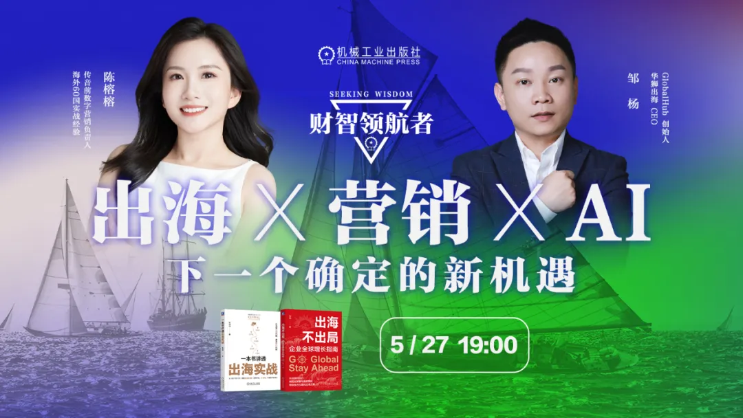 财智领航者第2期活动将在5月27日19点正式开启,以 “出海 × 营销 ×AI:下一个确定性机会” 为主题,深度探讨在多变的经济环境中,个人与企业如何找到新的赛道。