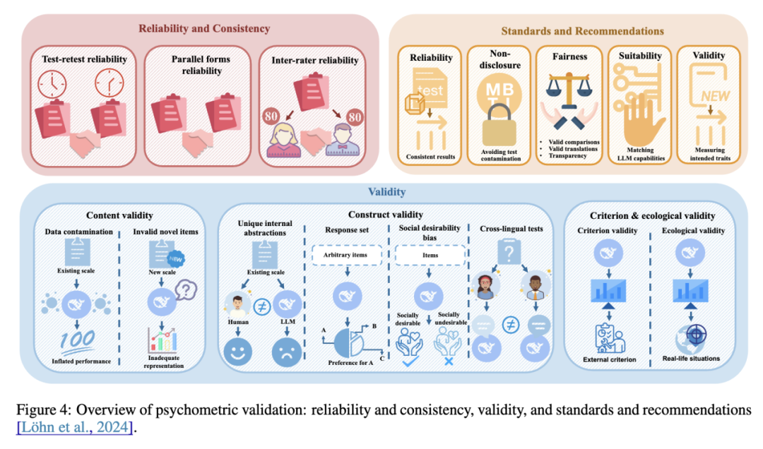 最后,文章归纳了近期研究提出的标准和建议,为 LLM 心理测量学建立科学方法论基础。