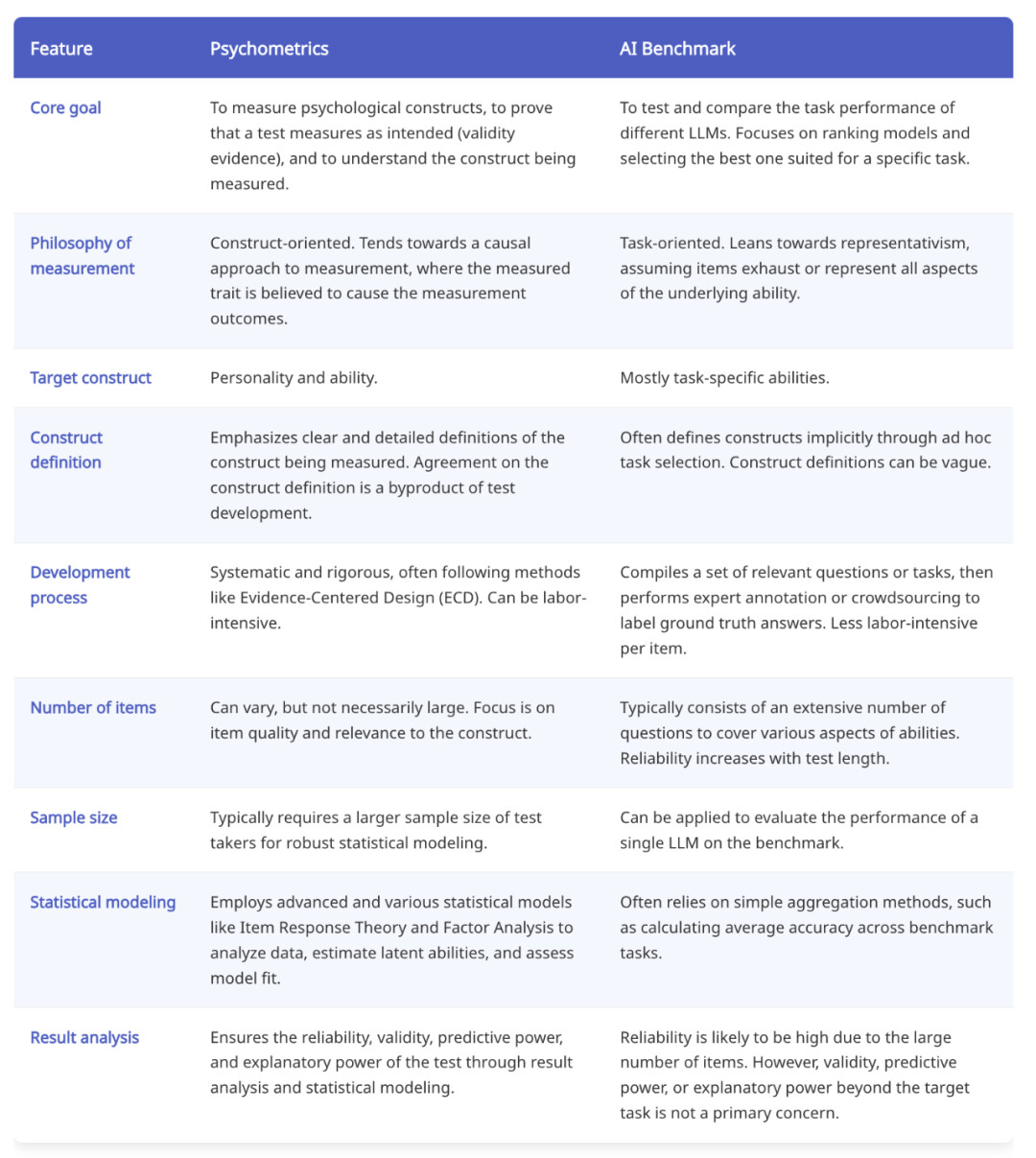 图:心理测量学和 AI 基准的对比