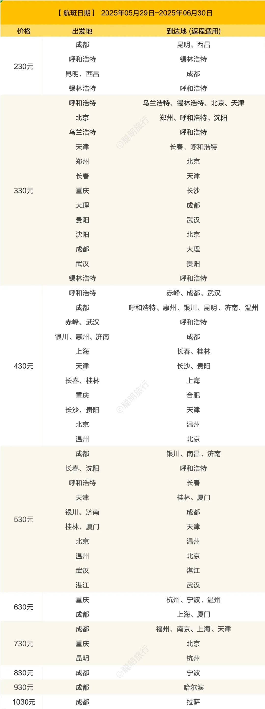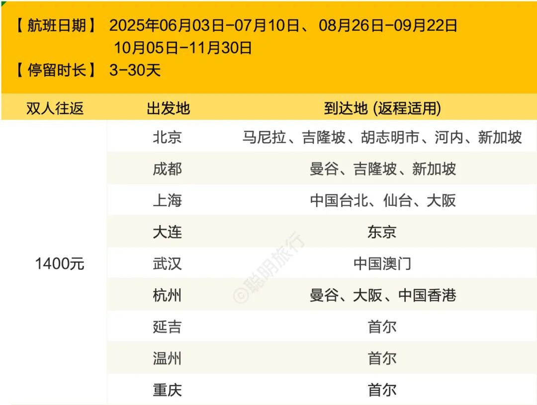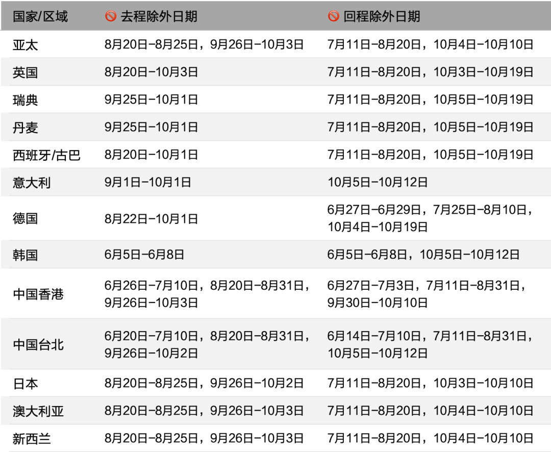 ⚠️ 国航航线不可用日期 以上3个套餐通用