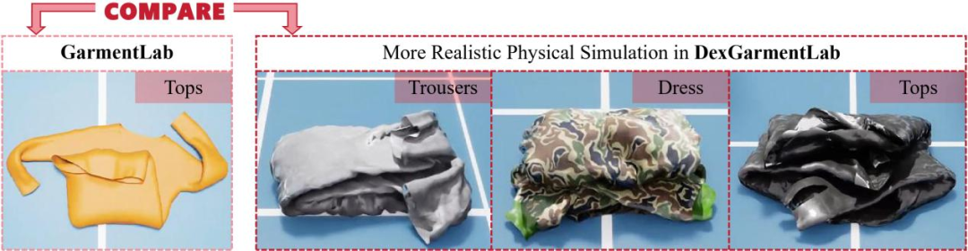仿真环境的局限性:真实的衣物操作往往涉及与衣架、人体等刚性或铰接物体的交互,而现有仿真器在物理准确性与真实感方面存在不足,难以支持高质量的灵巧操作研究。