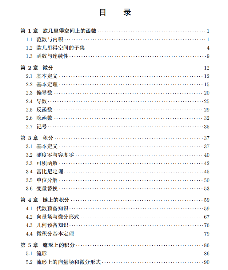 本书主要涉及高等微积分的知识,对于一些经典结论进行了现代化的处理,利用微分流形和微分形式,简明而系统地讨论了多元函数的微积分。全书共5章,包括欧几里得空间上的函数、微分、积分、链上的积分、流形上的积分。内容深入浅出,论证严格却易于理解。阅读本书需要具备坚实的微积分基础,熟悉线性代数和集合论符号。除此之外,对抽象数学的理解也是必不可少的。