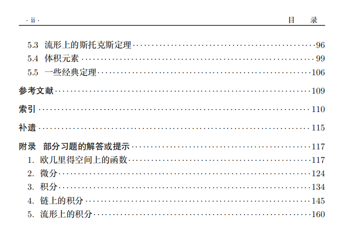 原书提到了少量参考书,不仅如原书作者所说的可能不完备,甚至对求解习题也不会有立竿见影的效果.我们也不打算再多列一些.至少,所有关于微分流形、微分拓扑的书,大部分是可以用的.但想要达到上面讲的目的,再读一本篇幅大一点的书似乎是很有必要的.译者想请大家注意原书作者的一本大部头书(五卷集):M. Spivak. A Comprehensive Introduction to Differential Geometry.Publish or Perish, Inc. Berkeley, 1979.这是一本几何名著,第一卷是讲微分流形的.读者如果有可能下一点功夫至少读上前几章,必会大有收获——但也不一定能找到这里的习题的详细解答.