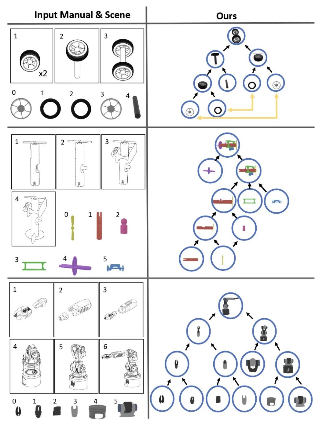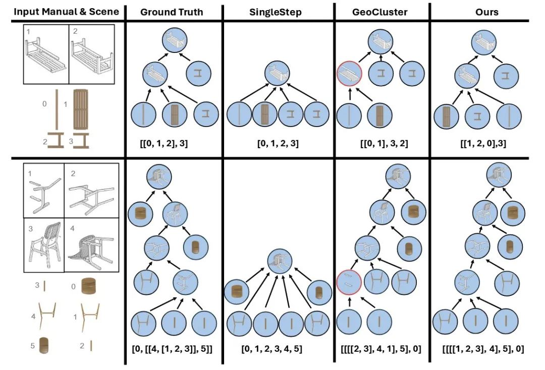 该结构化图表征为下游位姿估计与运动规划奠定基础,确保复杂装配任务的精准顺序执行。