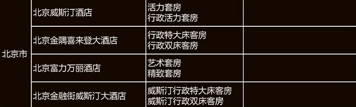 悦享版2晚版里有2家北京酒店,分别是北京港澳中心瑞士、北京诺富特和平宾馆可以兑换,全部只要549元/晚。