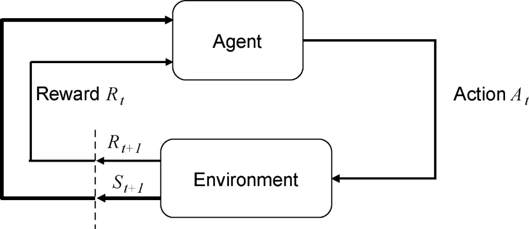 强化学习的理论基础之一是马尔可夫决策过程。强化学习的主体是Agent,Agent和环境互动。在一个时间点,环境的表示是当前的状态,Agent对环境实施一个动作,环境回馈给Agent一个奖励,并导致环境进入一个新状态。强化学习就是Agent根据经验改变策略以期达到长期最大奖励的过程。