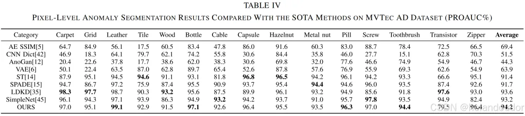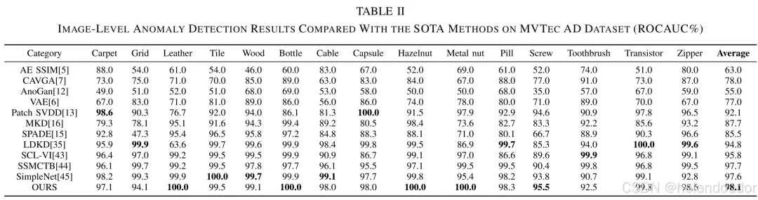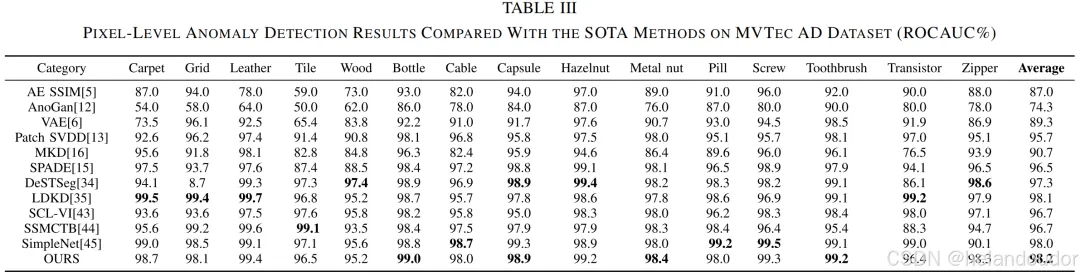 多尺度异常检测与分割:通过多尺度特征提取和多尺度输入重建,DBKD框架能够在多个尺度上捕捉异常信息,从而在图像级异常检测和像素级异常分割任务中取得了显著的性能提升。