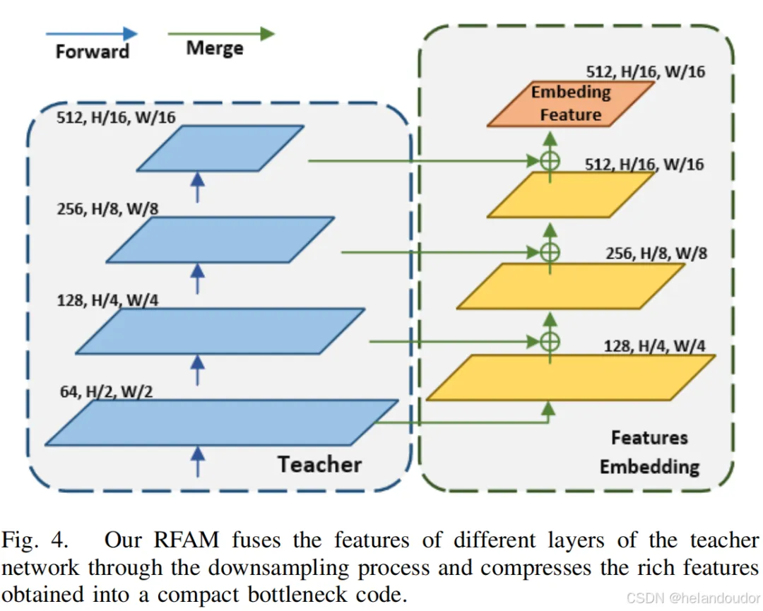 残差特征聚合模块(RFAM):作者设计了一个残差特征聚合模块(RFAM),用于将教师网络的高维特征压缩为紧凑且有效的低维特征嵌入。