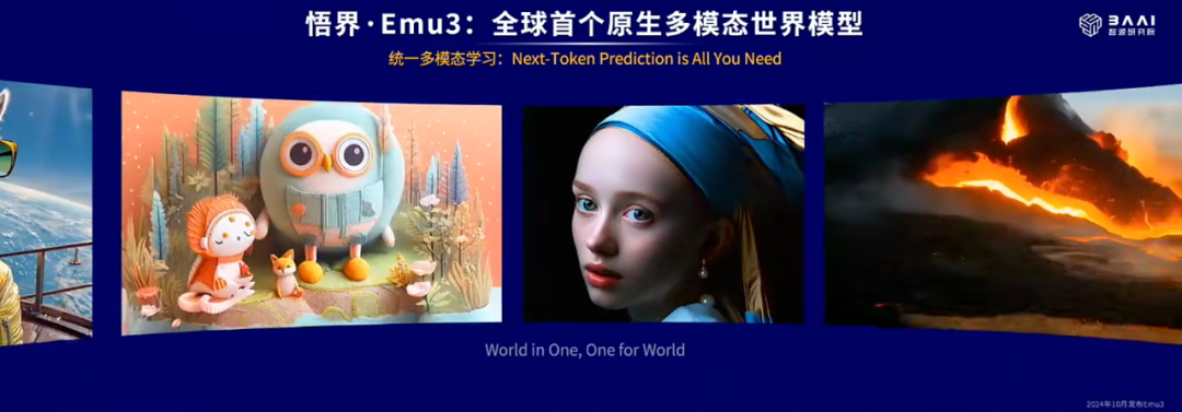 此次,「悟界」系列中的 Emu3 是全球首个原生多模态世界模型,它以下一个 token 预测作为核心范式,打通了多模态学习的路径,摆脱了扩散模型或组合式架构的复杂性。
