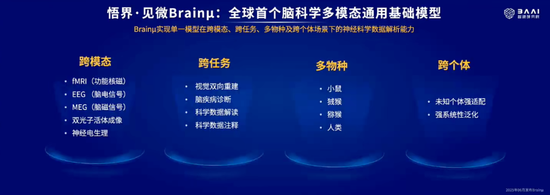 Emu3 的强大不止于文图视频创作领域,此次更是推动了脑科学领域的科研范式变革,带来全球首个脑科学多模态通用基础模型「见微 Brainμ」。